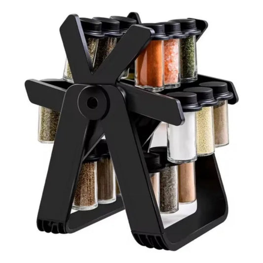 ORGANIZADOR DE CONDIMENTOS GIRATORIO + 18 FRASCOS DE VIDRIO