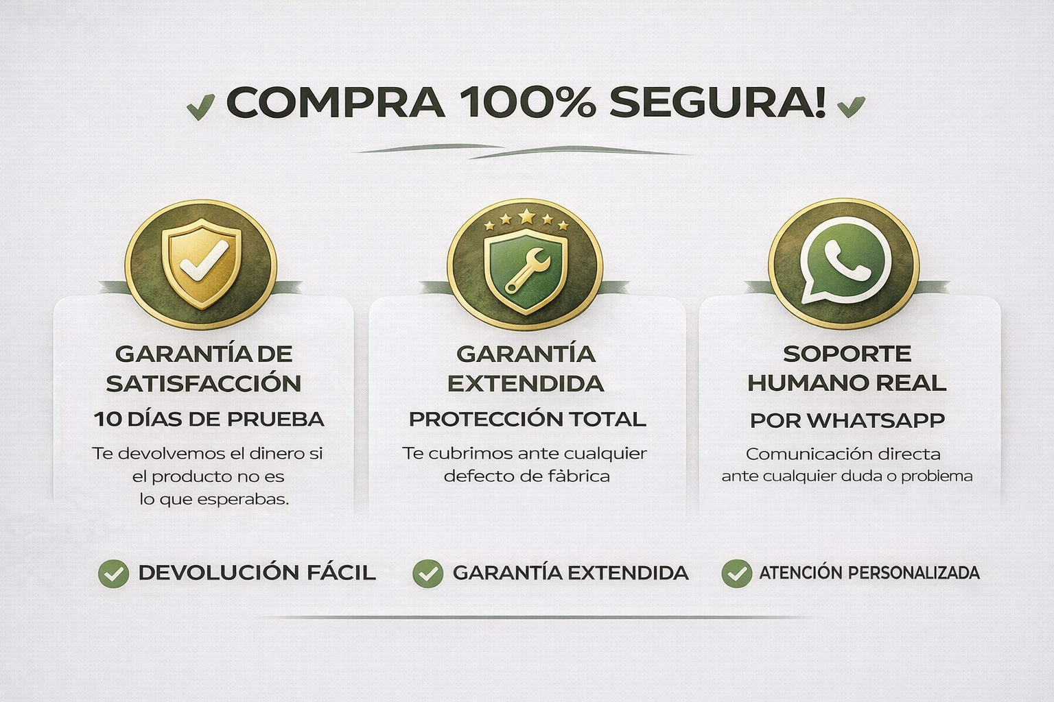 Con nuestra garantía, estás completamente cubierto. Tu satisfacción es nuestra prioridad.