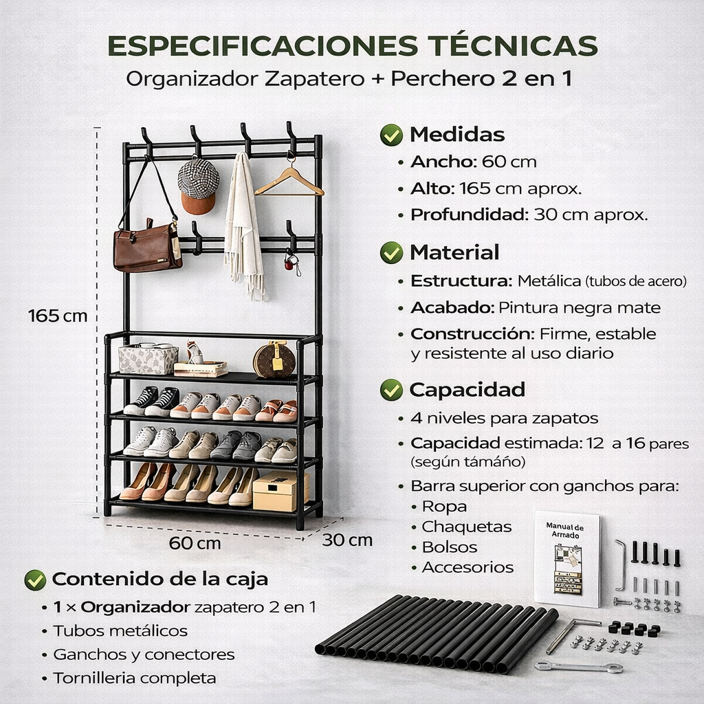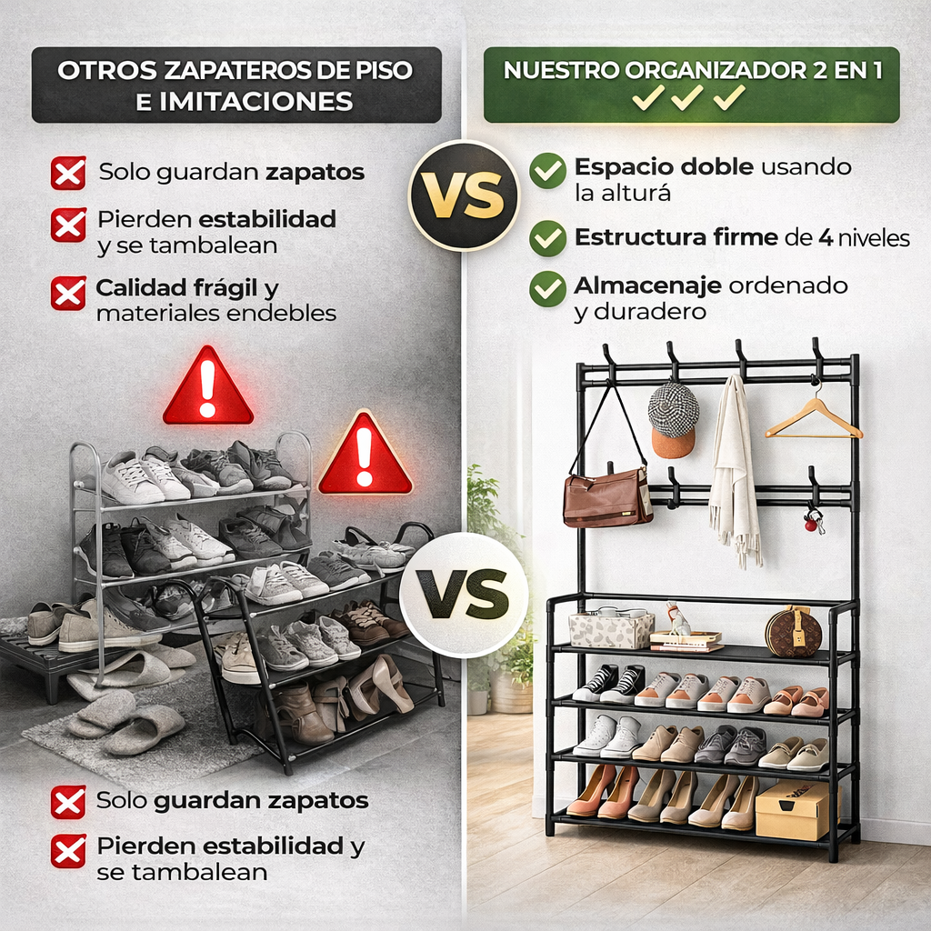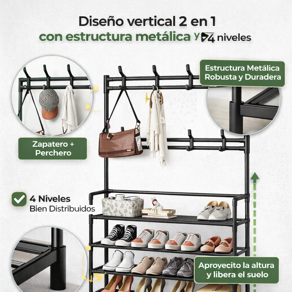 Estante Zapatero Perchero de 4 Niveles + Garantía Extendida 1 Año GRATIS